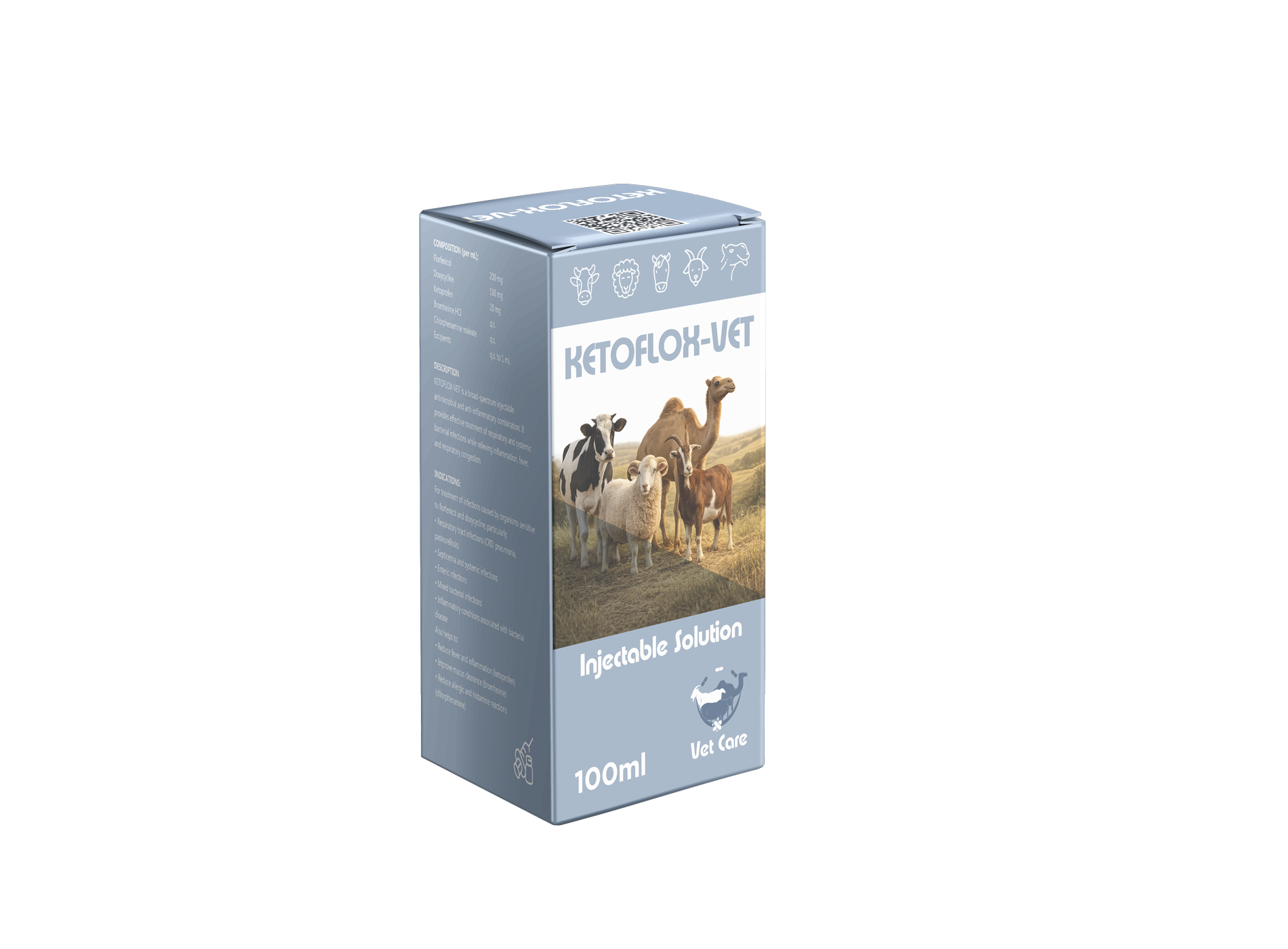 KETOFLOX-VET is a broad-spectrum injectable antimicrobial and anti-inflammatory combination. It provides effective treatment of respiratory and systemic bacterial infections while relieving inflammation, fever, and respiratory congestion.