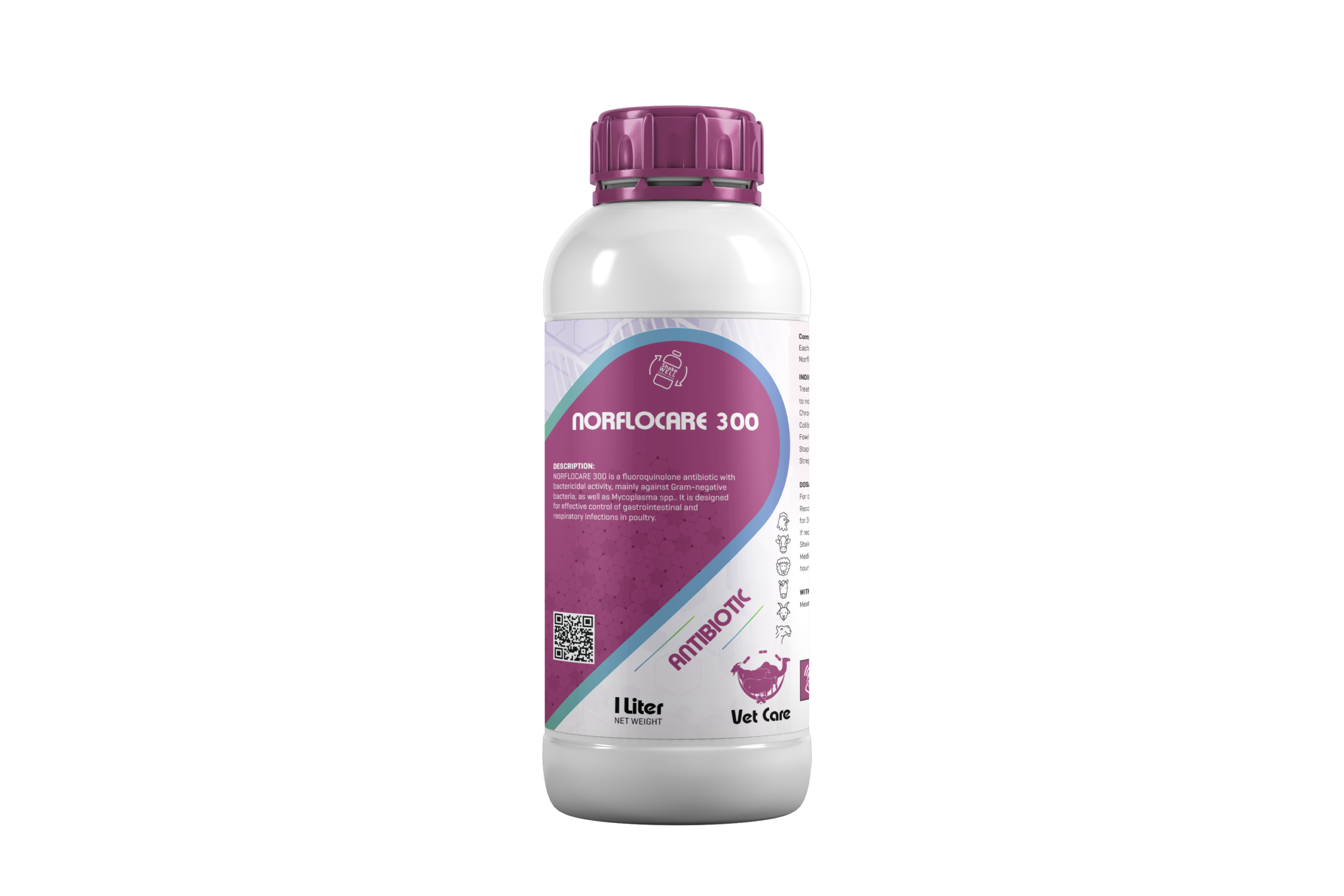 NORFLOCARE 300 is a fluoroquinolone antibioticwith bactericidal activity, mainly against Gramnegative bacteria, as well as Mycoplasma spp.. It is designed for effective control of gastrointestinal and respiratory infections in poultry.